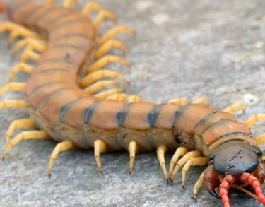 Un ciempiés es un artrópodo depredador, venenoso, con un cuerpo alargado y segmentado, y un par de patas por segmento. Son conocidos por su habilidad para cazar y paralizar a sus presas usando sus patas delanteras modificadas en forma de garras venenosas. Aunque pueden encontrarse tanto en exteriores como en interiores, a menudo se sienten atraídos por lugares oscuros y húmedos.