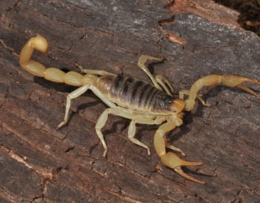Los alacranes, también conocidos como escorpiones, son arácnidos depredadores con un cuerpo segmentado, pinzas y una cola terminada en un aguijón.